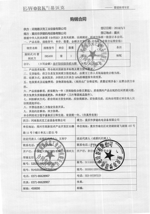 2018年重慶夢建機(jī)電設(shè)備有限公司合作業(yè)績