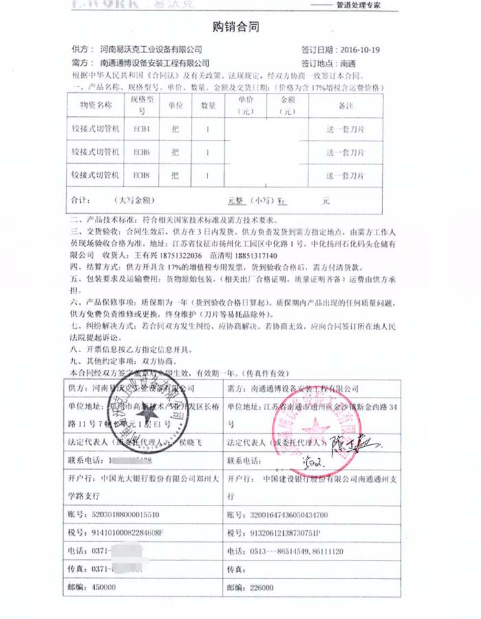 2016年南通通博設(shè)備安裝工程有限公司合作業(yè)績(jī)